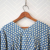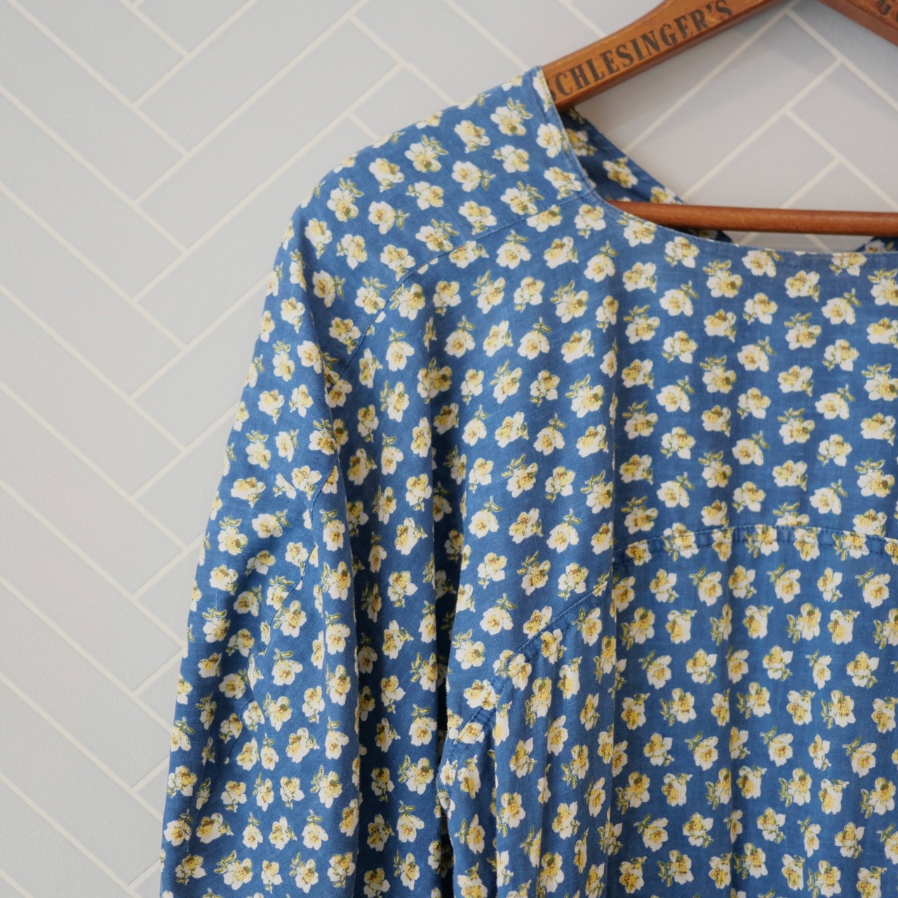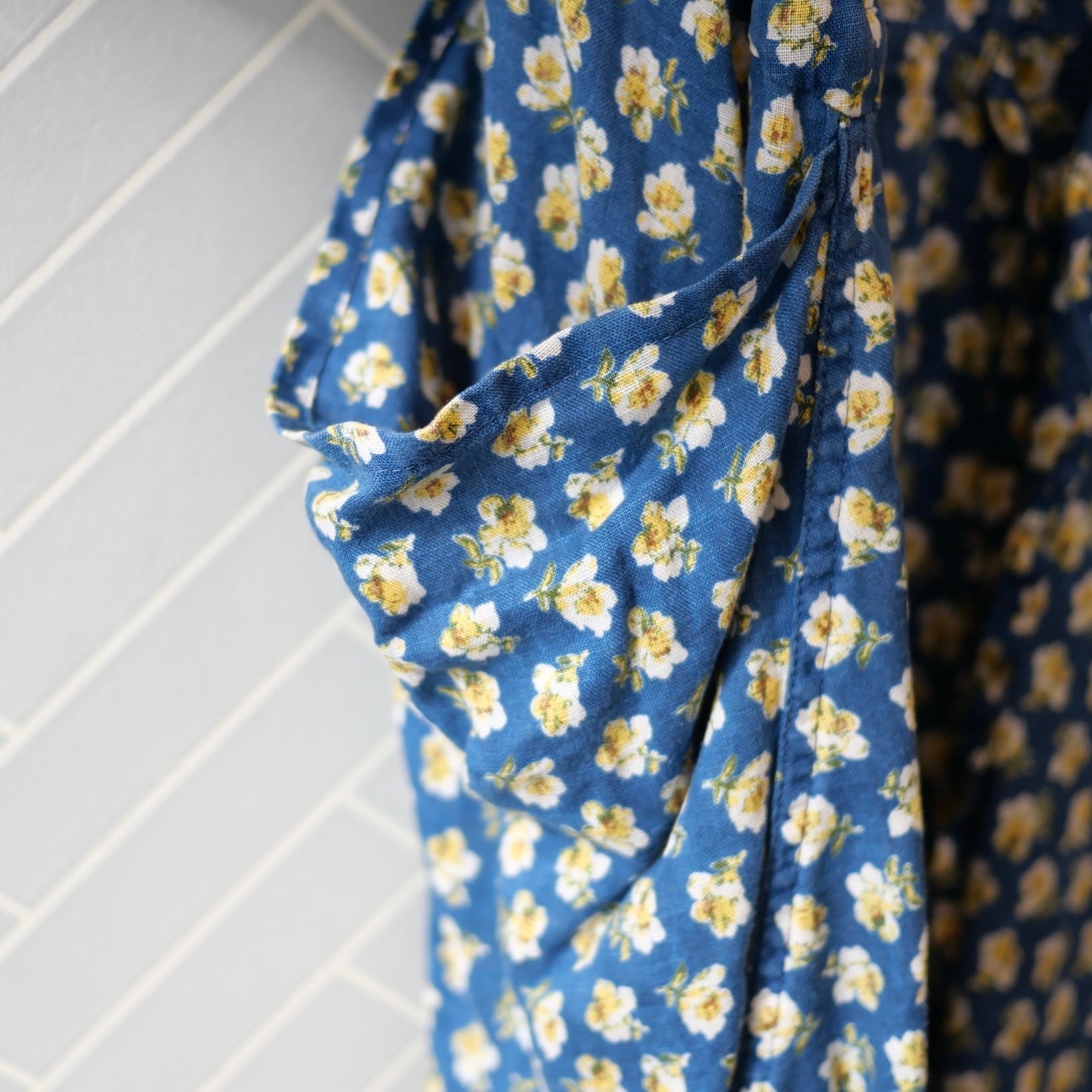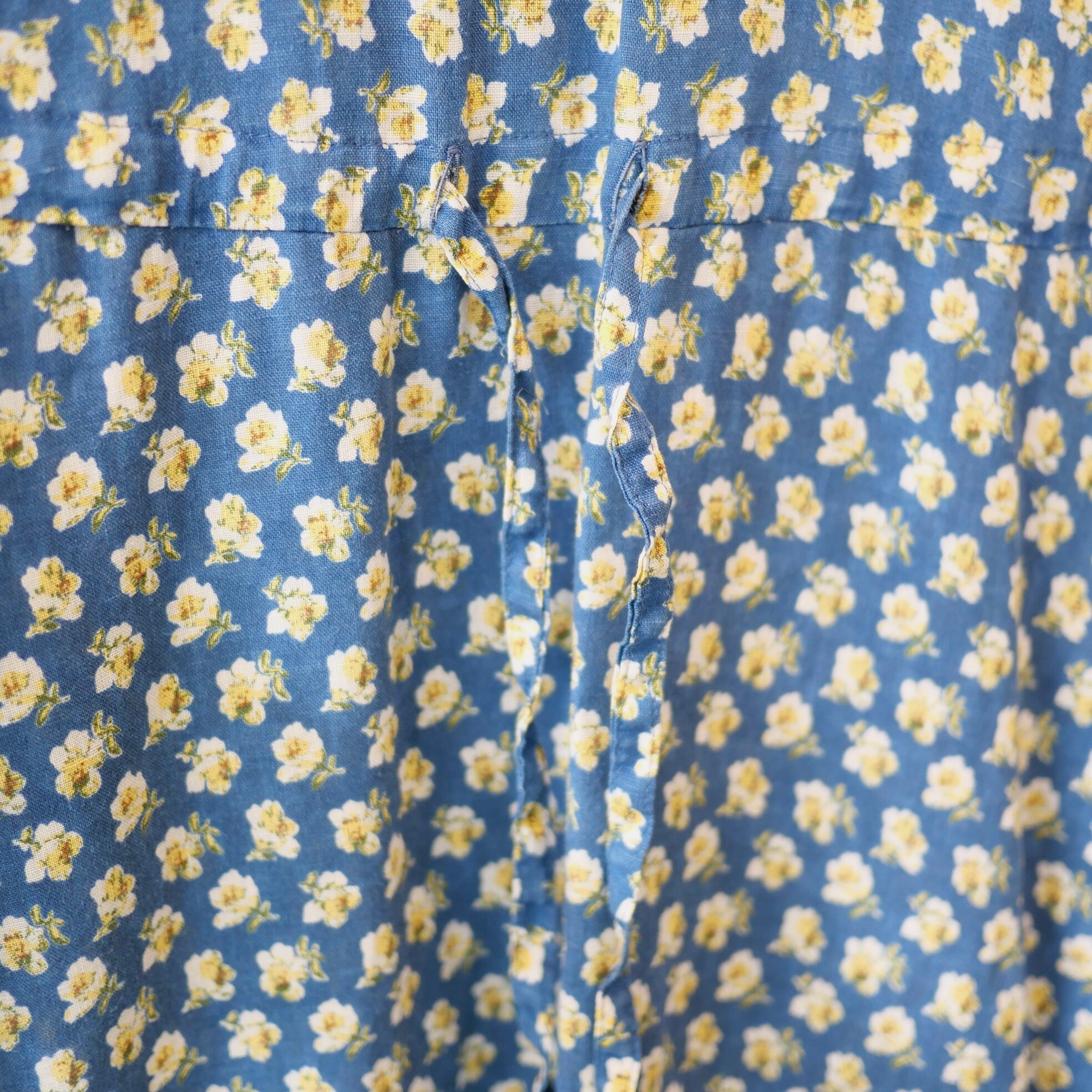 R&D.M.Co- 2020年の限定生地「ナーサリー」のワンピースです。ウエストの紐を絞ってシルエットが変わるデザインです。やや使用感がありますが、生地の毛羽立ちがなくリネン生地の滑らかさが保たれています。