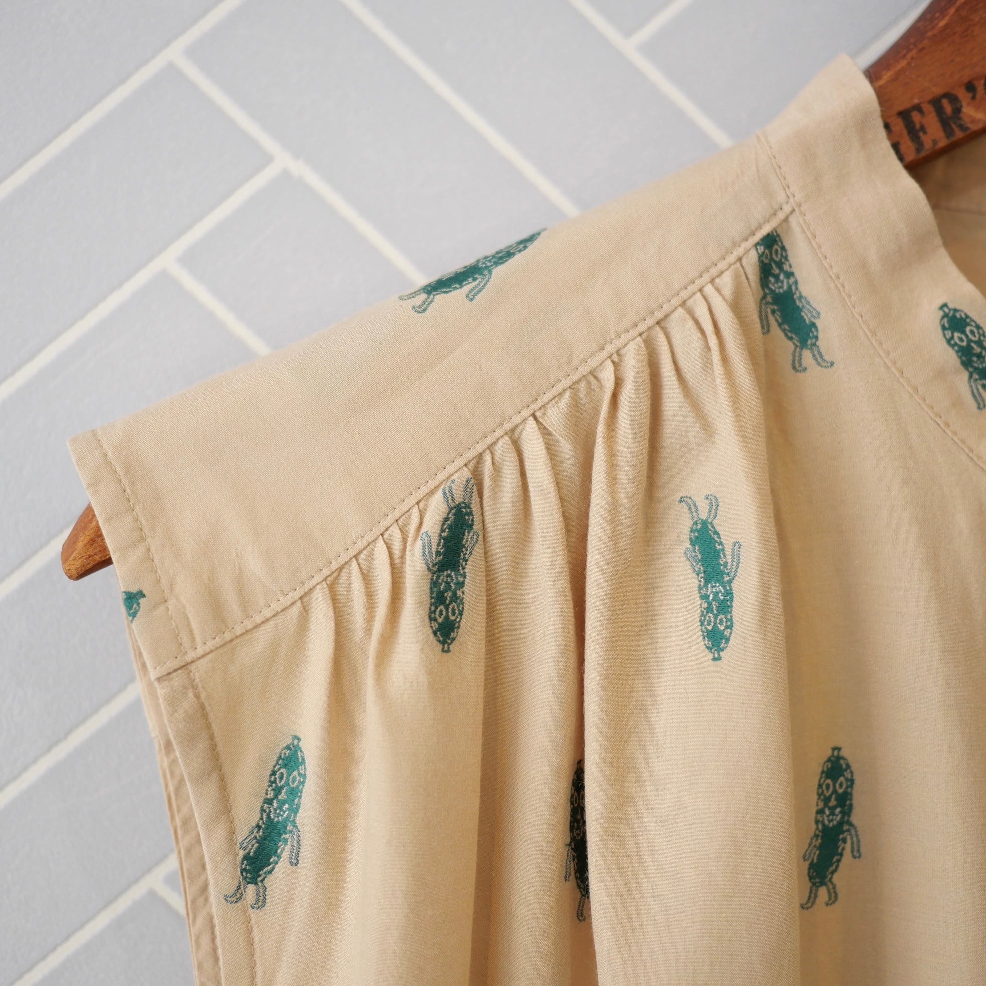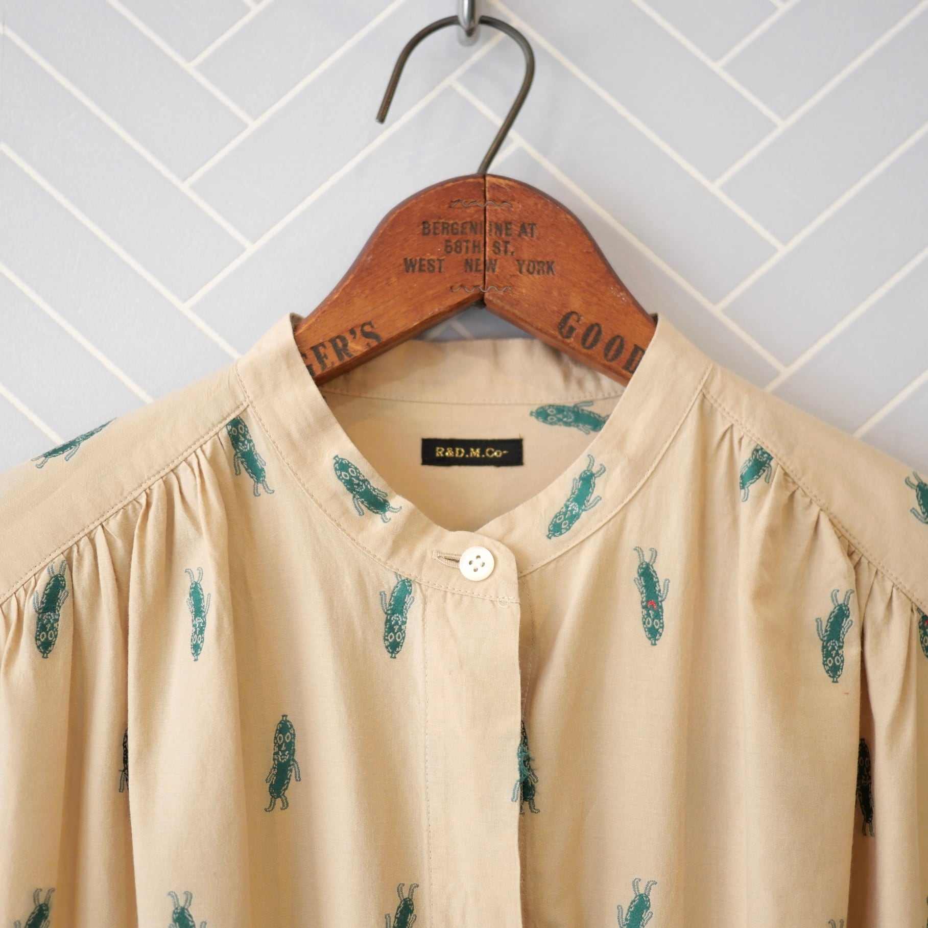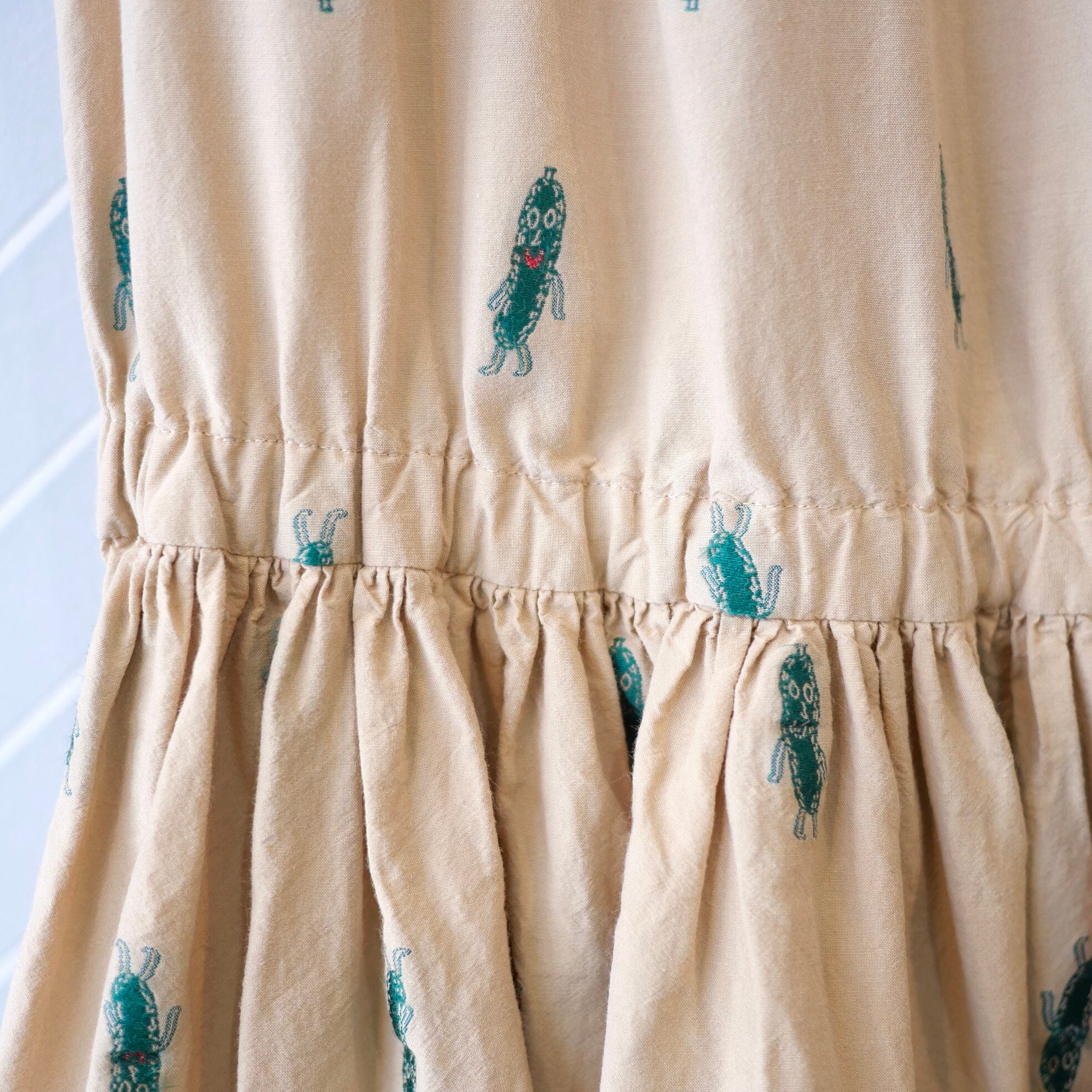 R&D.M.Co- 2023年の限定生地「ジャガードMr.ピックル」のノースリーブワンピース。前あきのワンピースですので、重ね着が楽しい一枚です。コットンの適度な厚みとシルクの滑らかさが特徴的な素材。インナーを変えながら通年お使いいただけます。