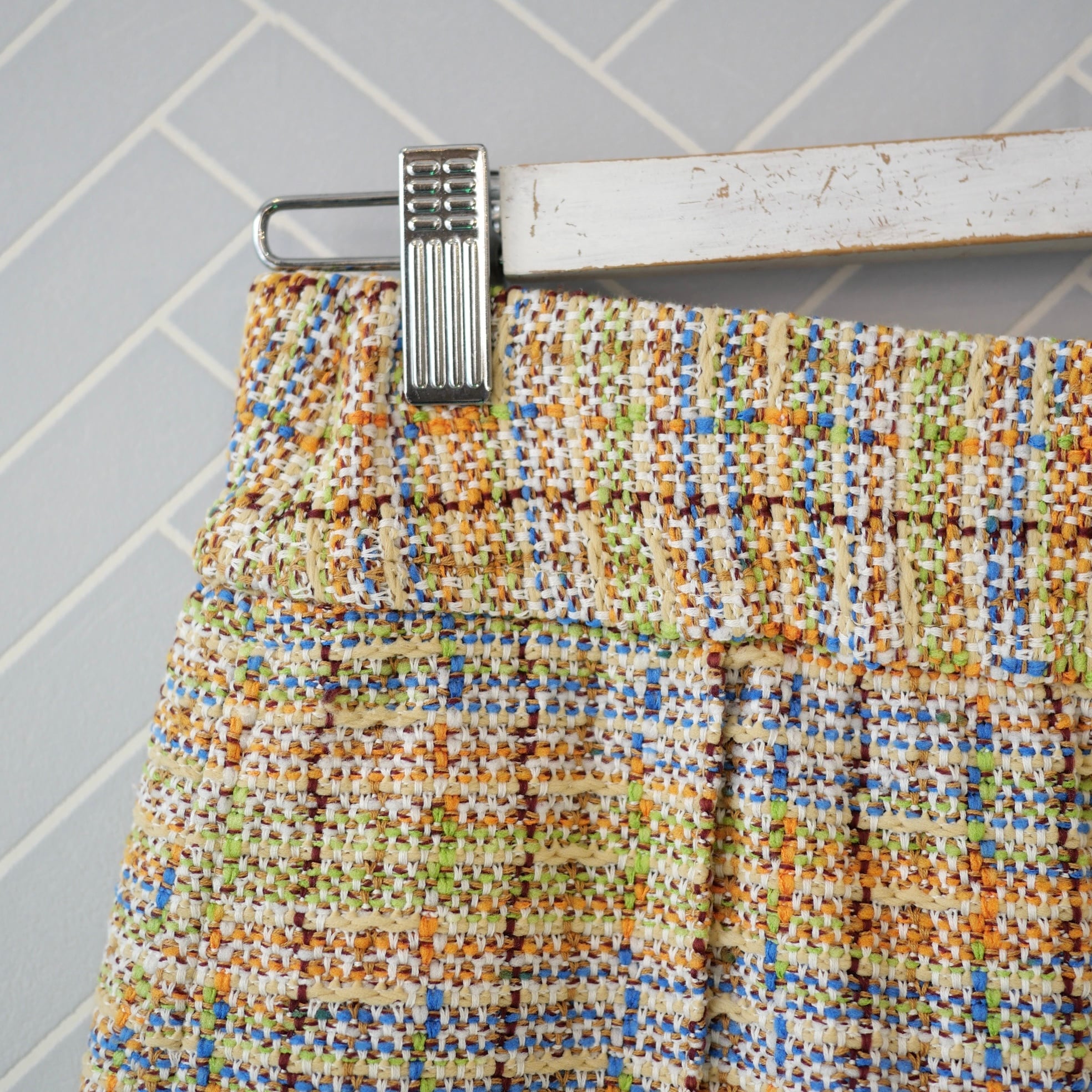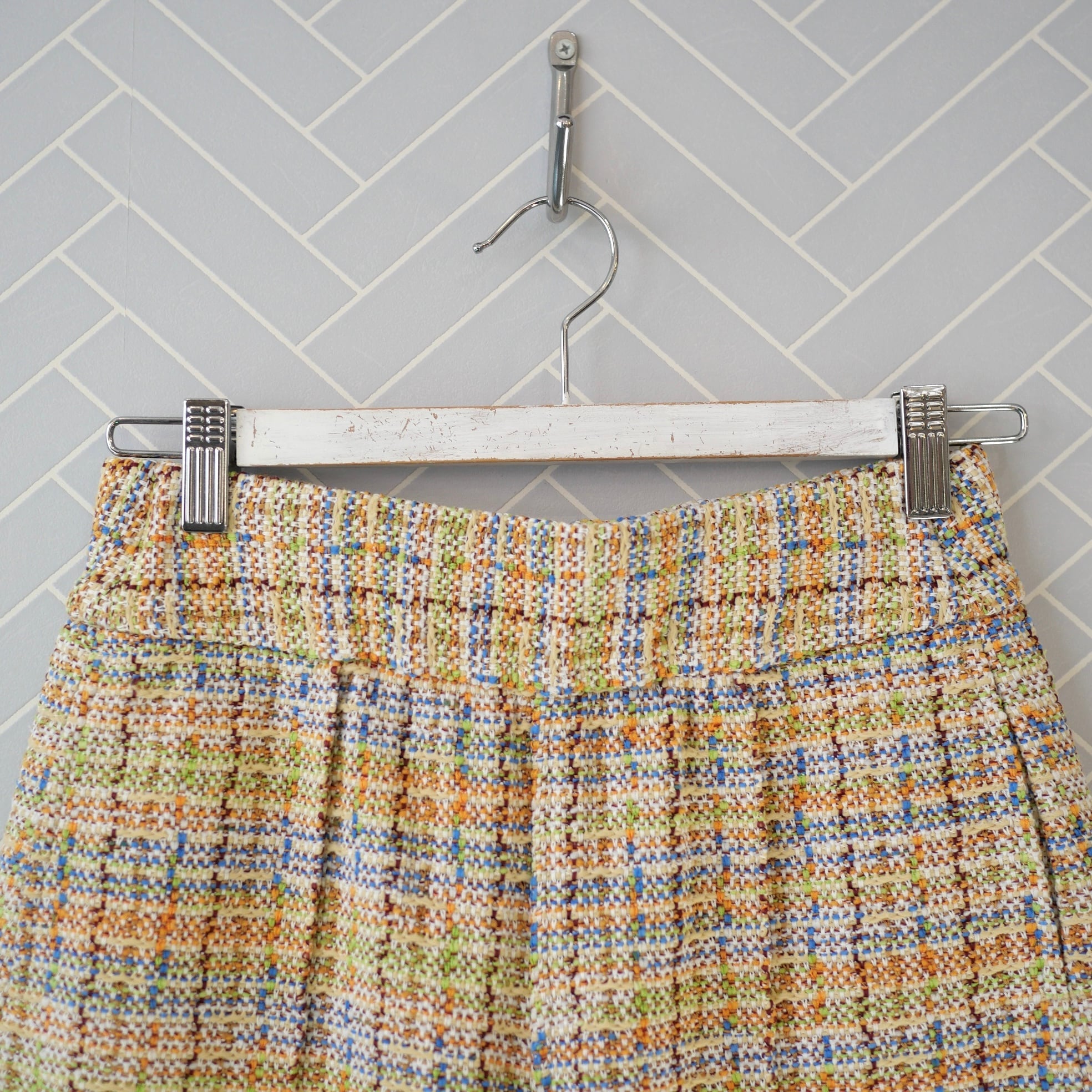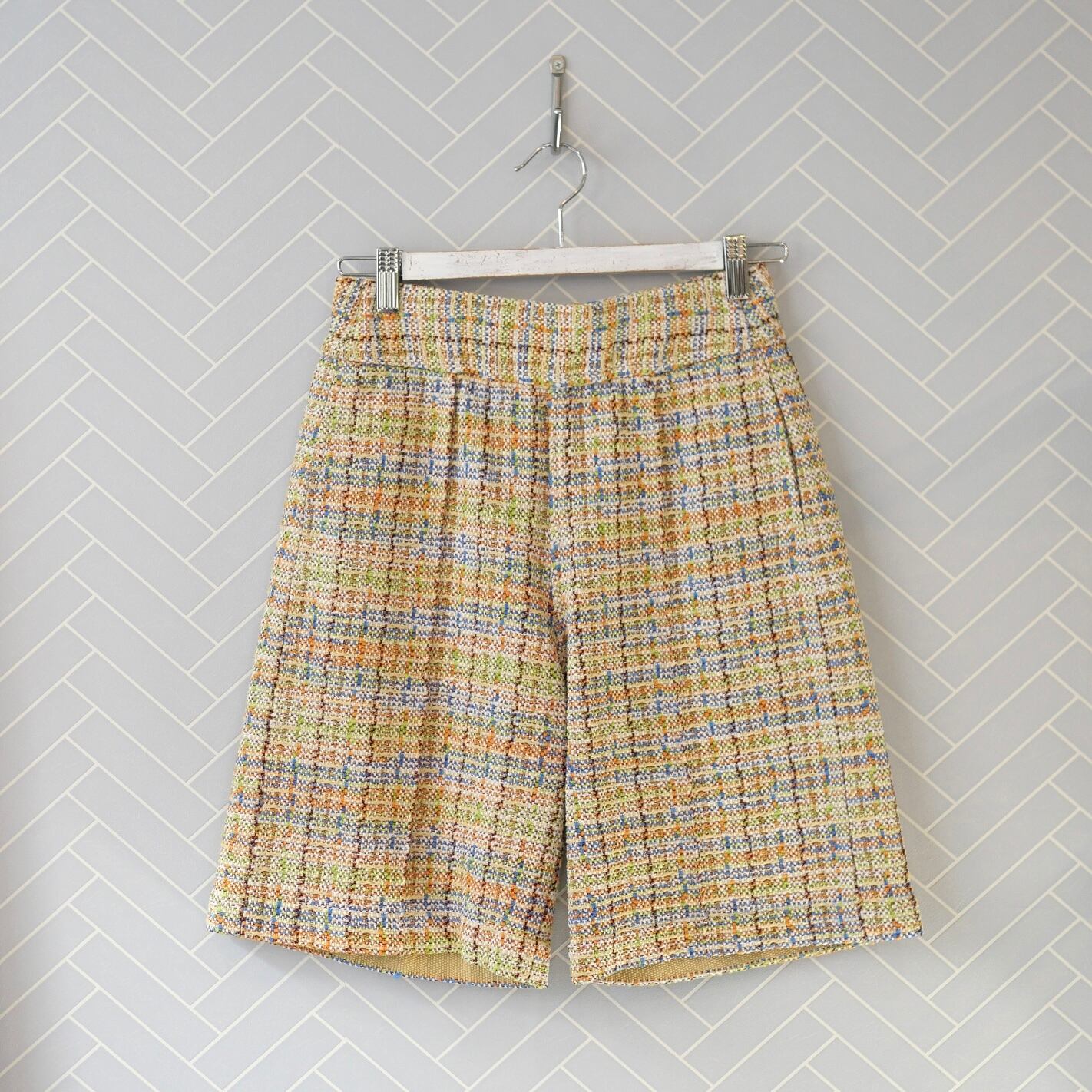 春らしい明るい糸を贅沢に使用したツイードパンツ。しっかりと厚みがあり、透けない素材です。タイツやハイソックス、ブーツなどと合わせてかわいいアイテムです。生地の上品さが際立つ大人のハーフパンツです。