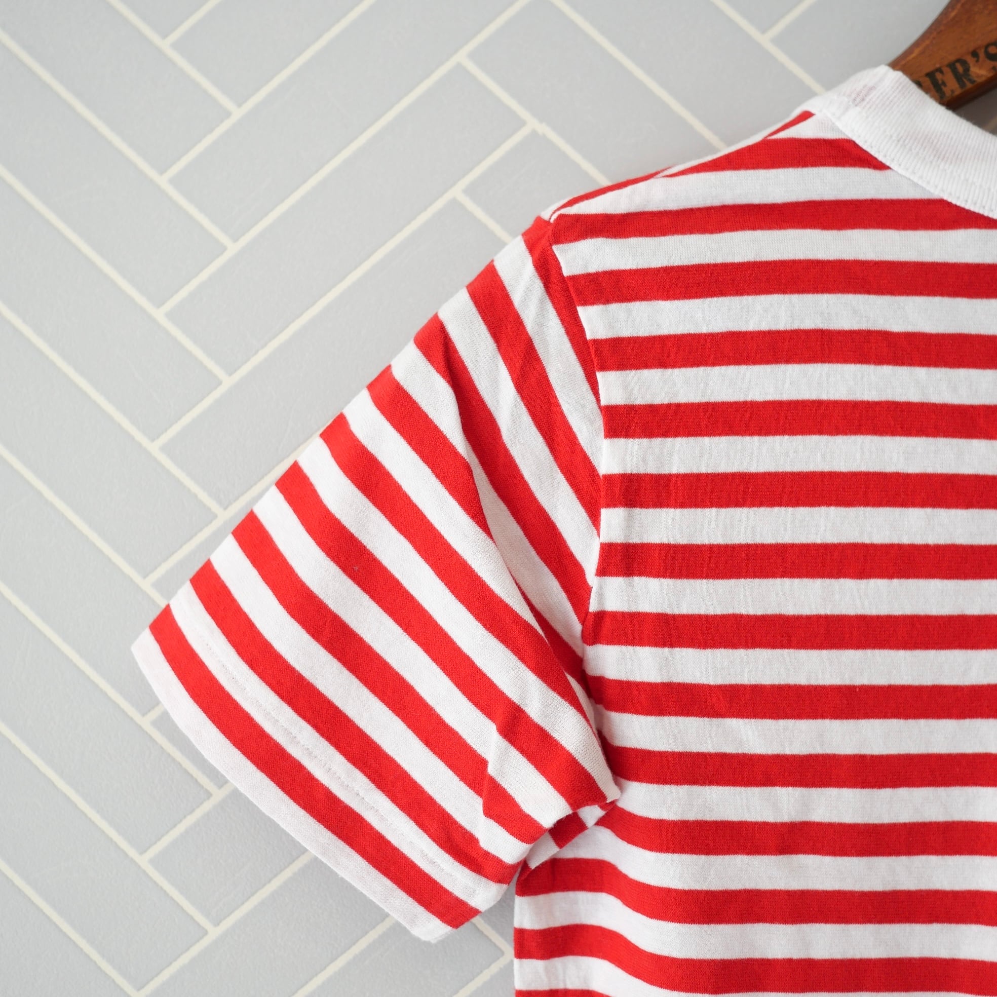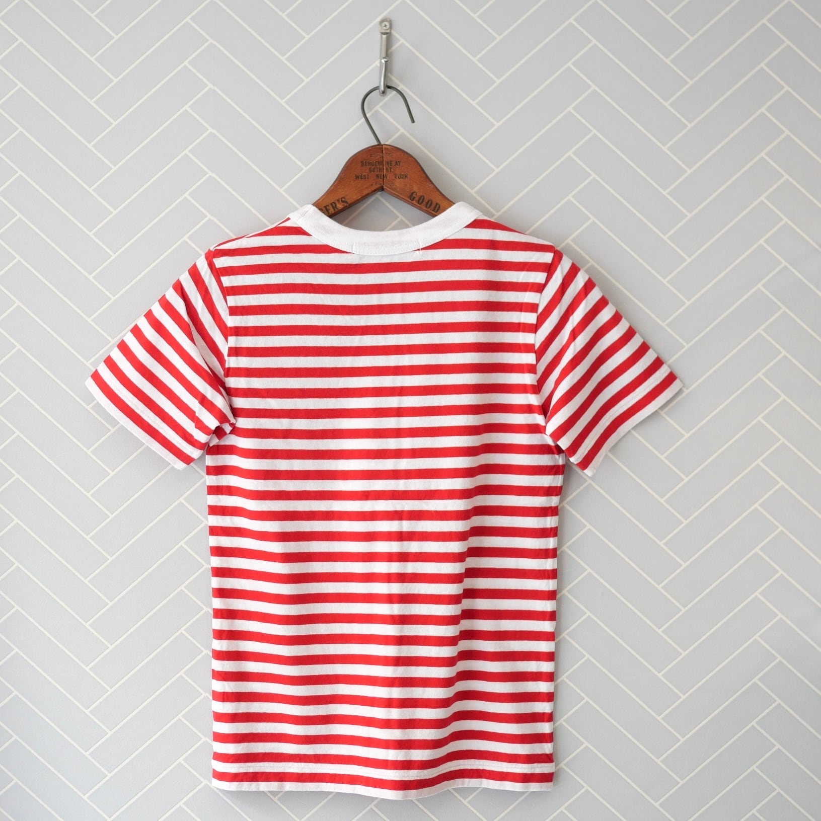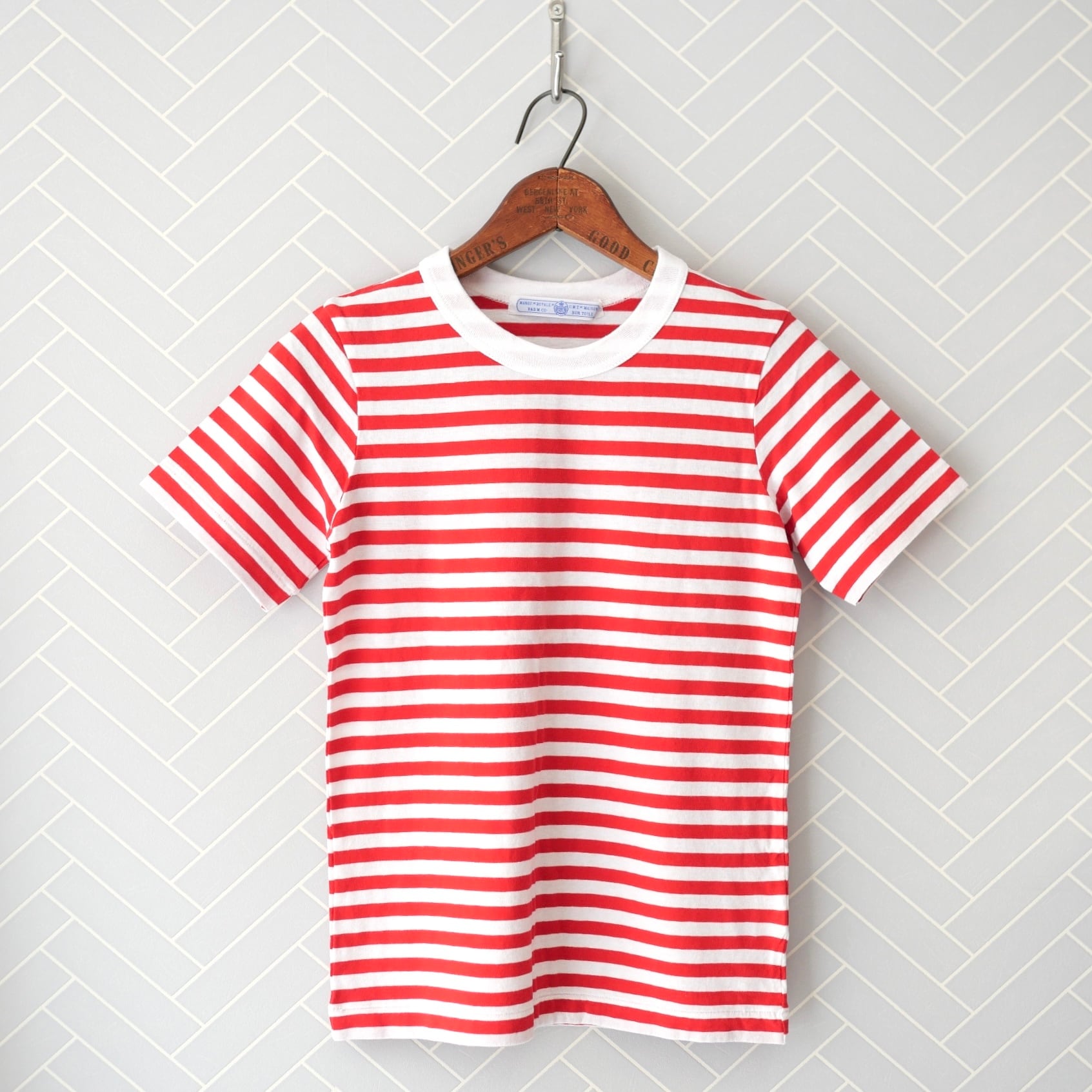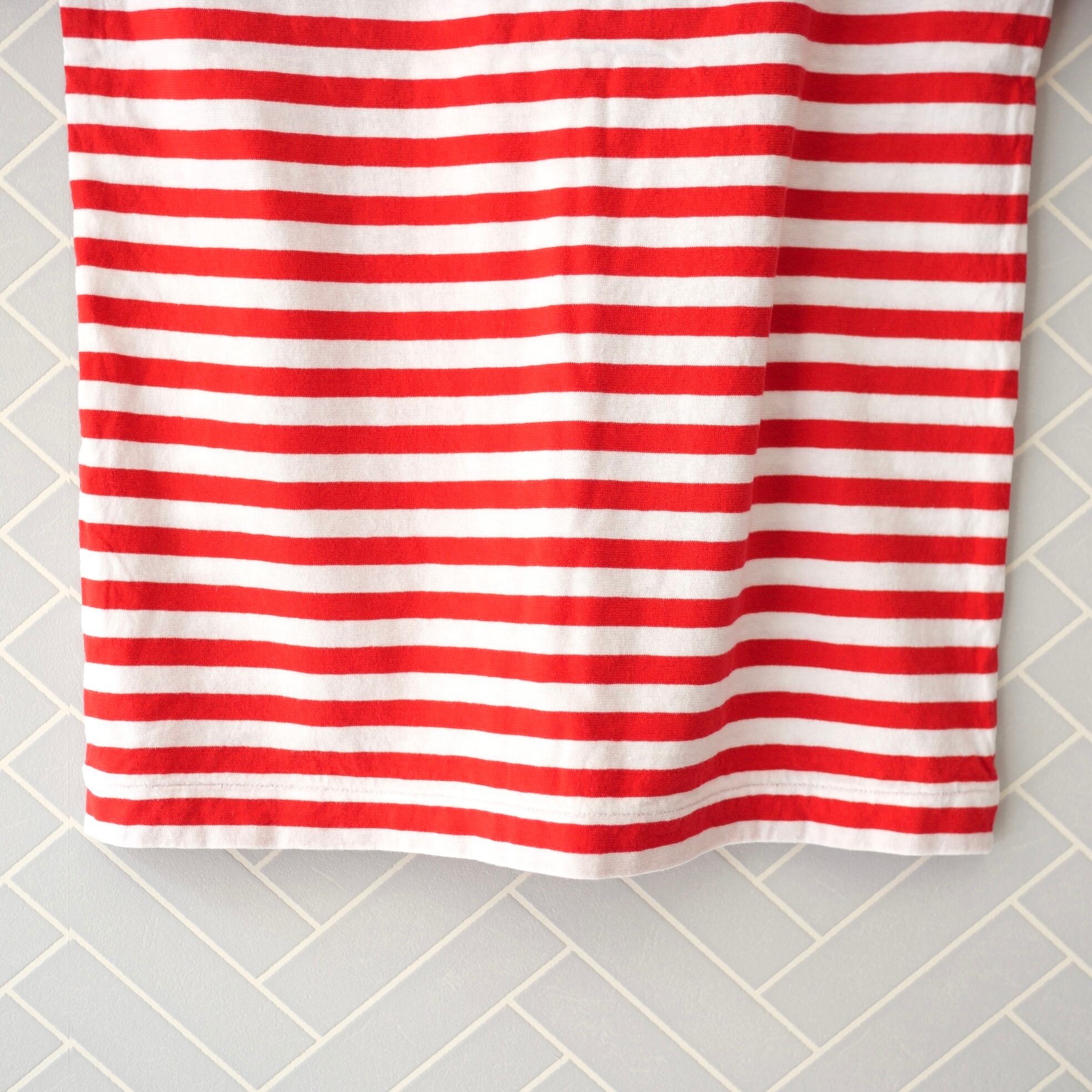 USED R&D.M.Co- ガーゼボーダー ショートスリーブシャツ Red
