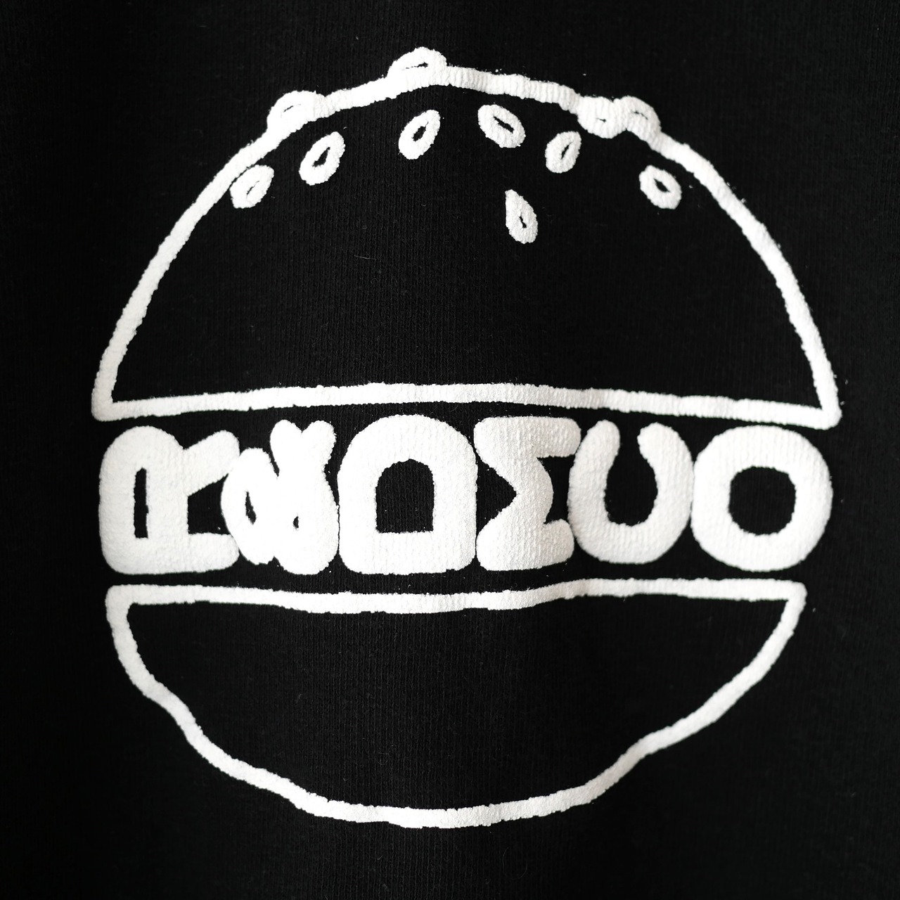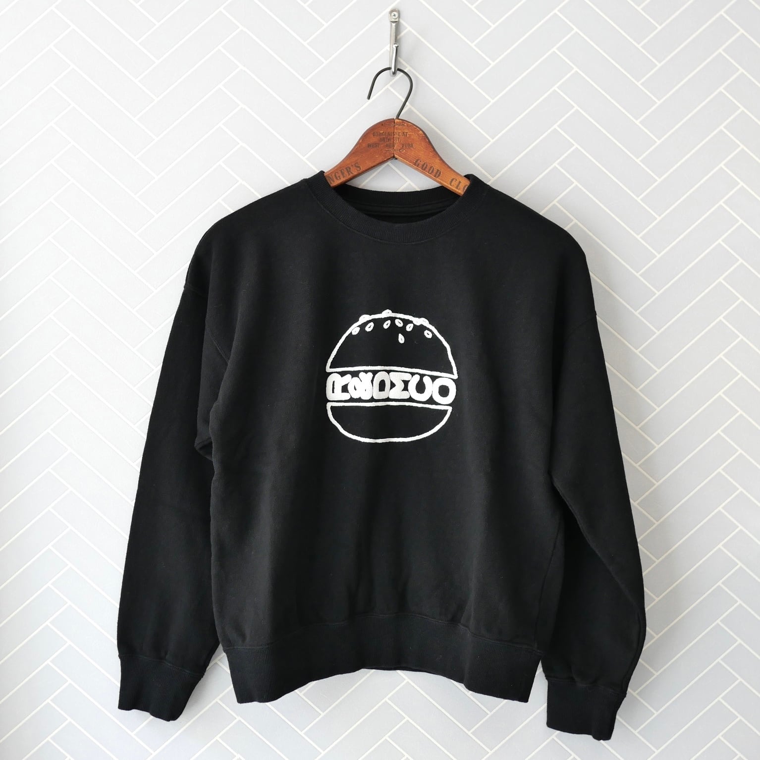 R&D.M.Co- 柔らかな着心地のコットントレーナー。裏側がパイル素材で、一年中活躍する人気商品です。ハンバーガーモチーフはラバー仕立てで立体感のあるつくり。